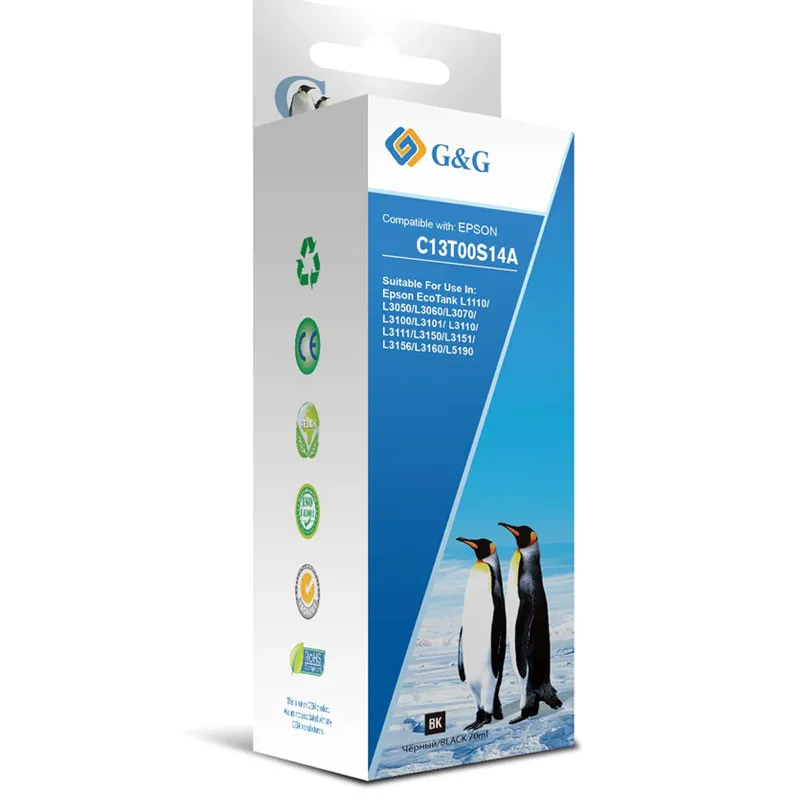 Bouteille D'encre Adaptable Epson - Technologie d'impression: Jet d'encre - Capacité: 70 ml -Compatible avec: Epson EcoTank L3151, EcoTank L3150 , EcoTank L3111, EcoTank L3110 , EcoTank L1110 - Couleur: Noir