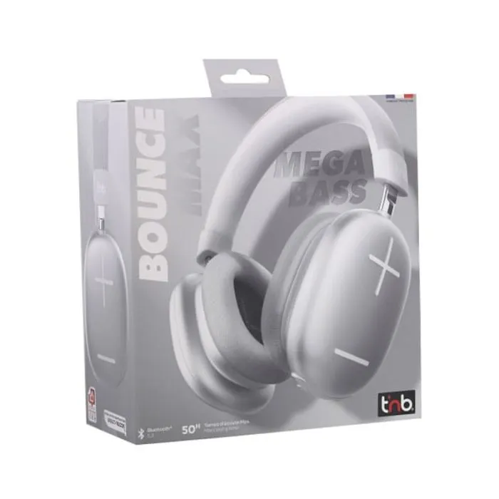 Casque TNB Bounce Max CBBOUNCE2SL Mega Bass - Connectivité Sans Fil: Bluetooth 5.3 - Interfaces: Jack 3.5, USB Type-C - Diamètre de Casque: 40 mm - Distance de fonctionnement: 10 mètres - Gamme de fréquence: 20 Hz à 20 GHz - Batterie lithium-ion 500mAh - Temps de conversation: 50 heures - Arceau réglable - Réduction de bruit passive - Dimensions (LxPxH): 22 x 21 x 8 cm - Couleur: Silver - Garantie: 1an.