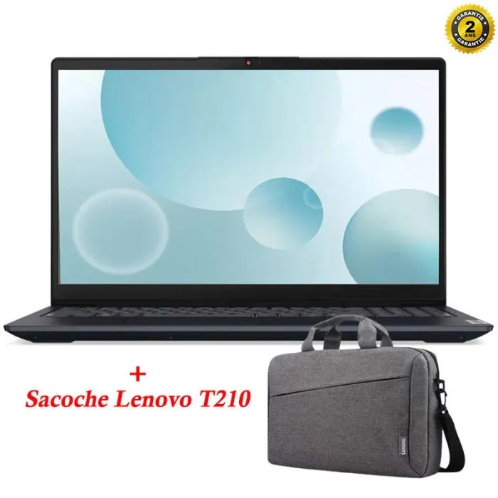 Ecran 15.6″ Full HD – Processeur: Intel Core i5-1235U (up to 4.40 GHz Turbo max, 12 Mo de mémoire cache, 10-Cores) – Système d’exploitation: Windows 11 Famille – Mémoire RAM: 8Go DDR4-3200 – Disque Dur: 512Go SSD – Carte Graphique: Intel Iris Xᵉ Graphics avec Wifi, Bluetooth, 1x USB 2.0, 1x USB 3.2 Gen 1, 1x USB-C 3.2 Gen 1, 1x HDMI 1.4b, 1x prise combo casque/microphone (3,5 mm), 1x lecteur de carte, 1x connecteur d’alimentation – Clavier Rétroéclairé – Couleur: Bleu – Garantie: 2 ans + Sacoche Lenovo T210
