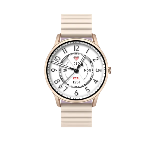 Montre Connectée KIESLECT Lady Calling Watch Lora - Connectivité: Bluetooth 5.2 - écran semi-AMOLED 1.32" 3D sphérique (360 x 360px) - Microphone et Haut-parleur - Appel Bluetooth - Fréquence cardiaque, moniteur d'oxygène sanguin - Lecteur de musique - Capacité de batterie: 280mah - Temps de Charge: 2 heures - Autonomie: 3-5 jours, jusqu'à 10 jours en veille - 70 Modes sport - Étanche: IP68 - Boîtier en aluminium - Compatibilité : Android et iOS - Couleur: Gold - Garantie: 2ans